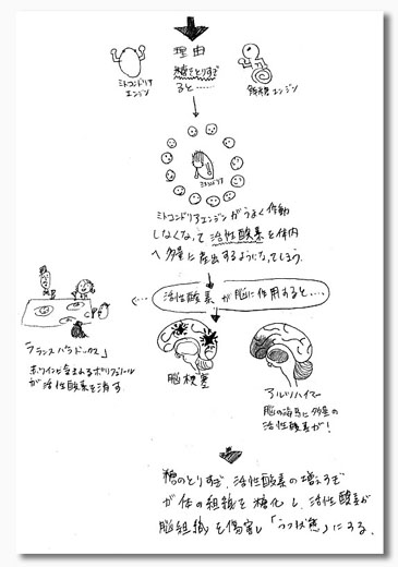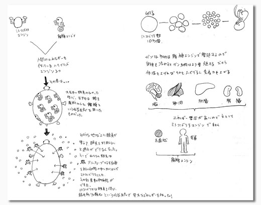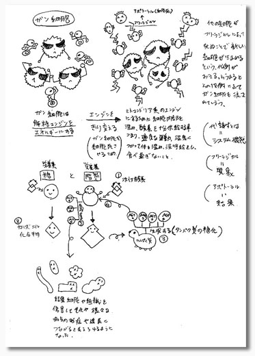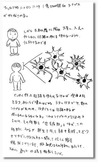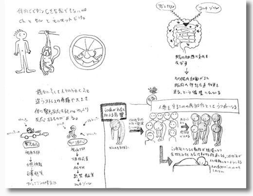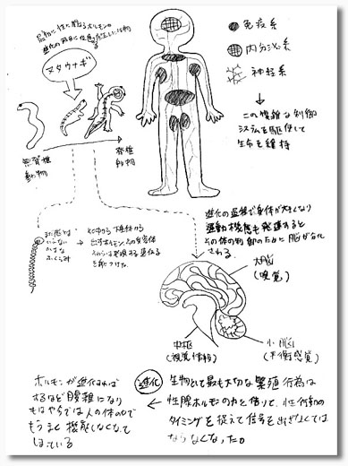 人間の体は、本当に良く出来ている。 私とこの本の仕事上の関係は全くないが、とても読みやすく、体のすごさを私好みの視点で描いている。 そんな所が気に入り、書いてある知識をより理解したいと思い、読みながら図式化していく事を思いついた。 これが始めるとくせになる。「ん?」と意味が曖昧になりそうな箇所も、この図式化の方法だと腑に落とせる。